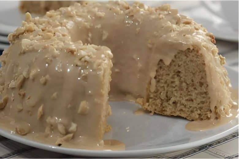 - Cubra o bolo, salpique amendoim picado e já pode servir.