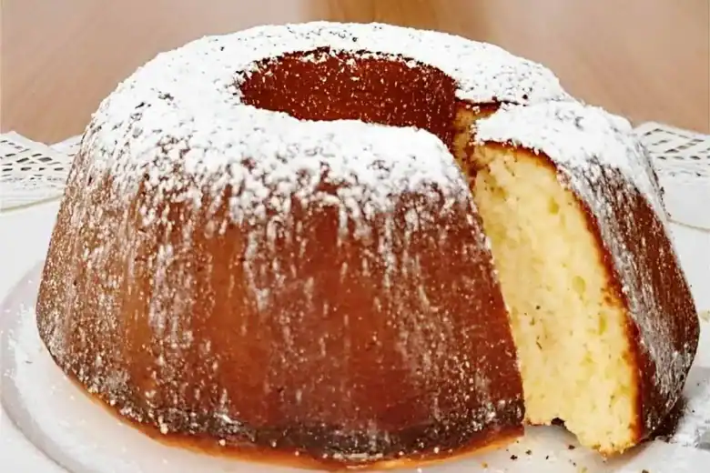- Polvilhe açúcar de confeiteiro por cima do bolo e sirva.