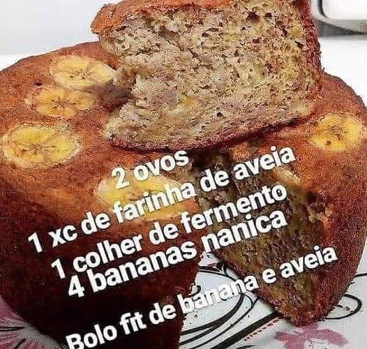 Venha aprender a compor esta receita de Bolo fit de banana e aveia Ingredientes 2 ovos 4 banana-nanica 1 xi cará de aveia fina 1 colher Fermento químico Mondo de preparo Amasse as bananas, bata os ovos um pouco, depois ...
