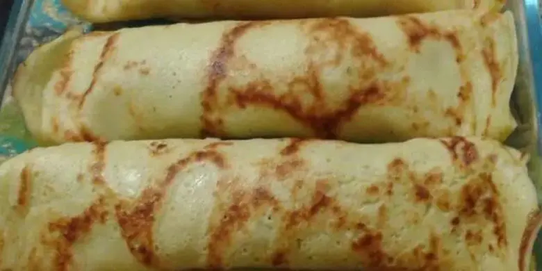 - Aqueça um pouco de óleo em uma frigideira e despeje cerca de uma concha de feijão da massa batida. Espalhe a massa pela frigideira, formando uma camada fina.
