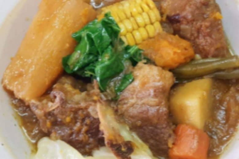 A princípio, separe 01 quilograma de costela bovina do peito com osso, 04 peças de aipim (mandioca) em pedaços, 04 folhas de couve, 04 folhas de repolho branco, 01 batata branca média, 01 cebola picada, 01 alho-poró picado, 01 talo de salsão picado, 01 batata-doce, 01 cenoura média, 01 espiga de milho, 04 dentes de alho, 04 colheres de sopa de azeite de oliva, sal a gosto, pimenta-preta a gosto, 10 vagens e 03 fatias de abóbora cabotiá.