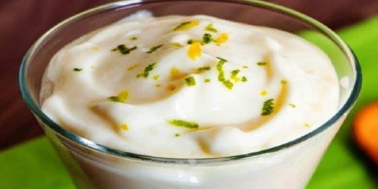 Sumo e raspas de um limão grande, ovo-3 claras, iogurte natural-1 pote, essência de baunilha-5 gotas, gelatina sem sabor-1 sachê, adoçante a gosto.